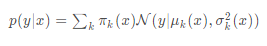 ๋ ฅ x์ ๋ํด distribution parameters๋ฅผ ํ์ตํ๋ค. mean, variance, mixing coefficient